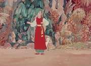 Описание: Было у купца три дочери. Отправляясь в заморское странствие, пообещал он им привезти подарки, какие они пожелают. Две старшие попросили себе тканей и красивых безделушек. И лишь меньшая, любимая Настенька, заказала отцу чудо диковенное, невиданное - аленький цветочек, который видела она во сне.